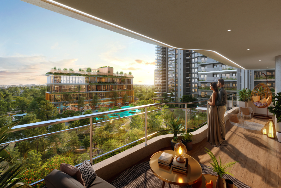 Designed by AEDAS (Hong Kong), known for Marina Bay Sands and global icons, with landscape by Coopers Hill (Singapore) and interiors by Design Forum International (DFI, New Delhi), the project features double-height lobbies, diagonal tower positioning for airflow, and 3 passenger + 1 service lift per tower. Towers ensure no two apartments face each other for privacy, with day-long sunlight, exclusive foyers, and stilt-level recreation minimizing surface traffic. GNIDA-approved plans guarantee compliance, while artistic impressions showcase sunlit interiors and tropical water features.