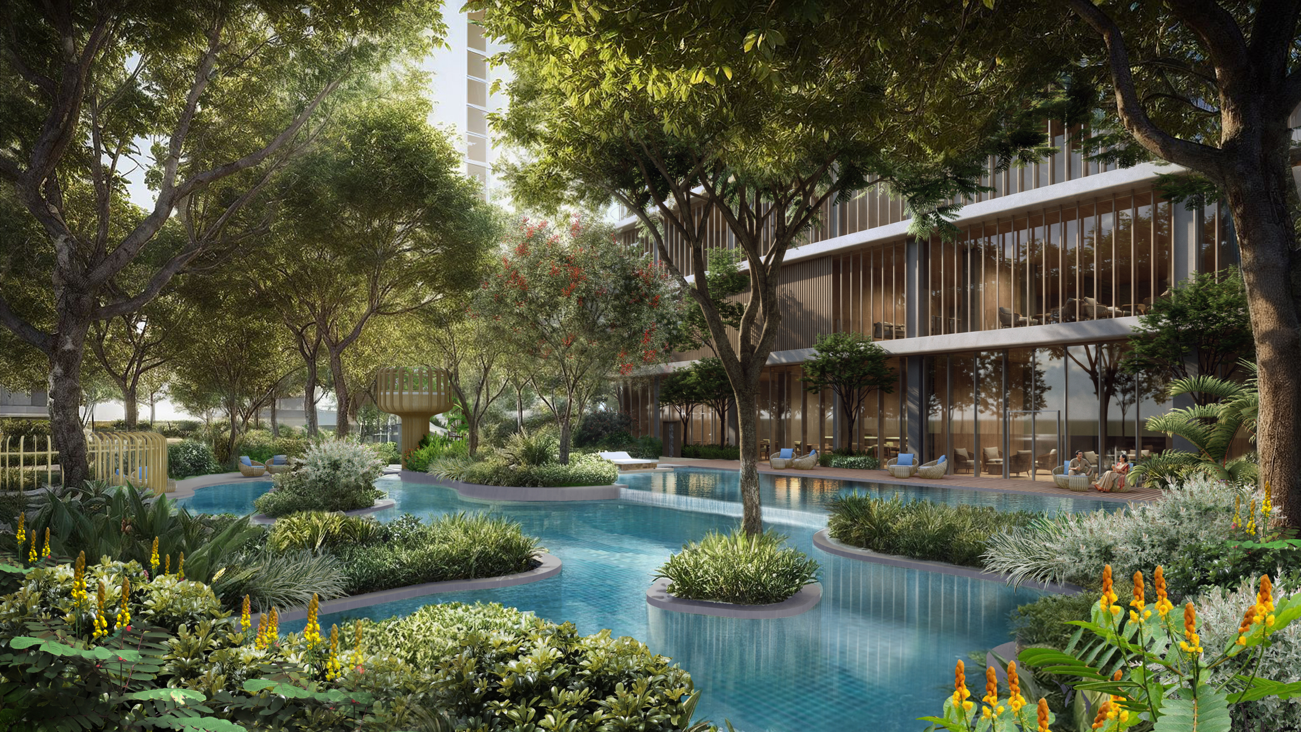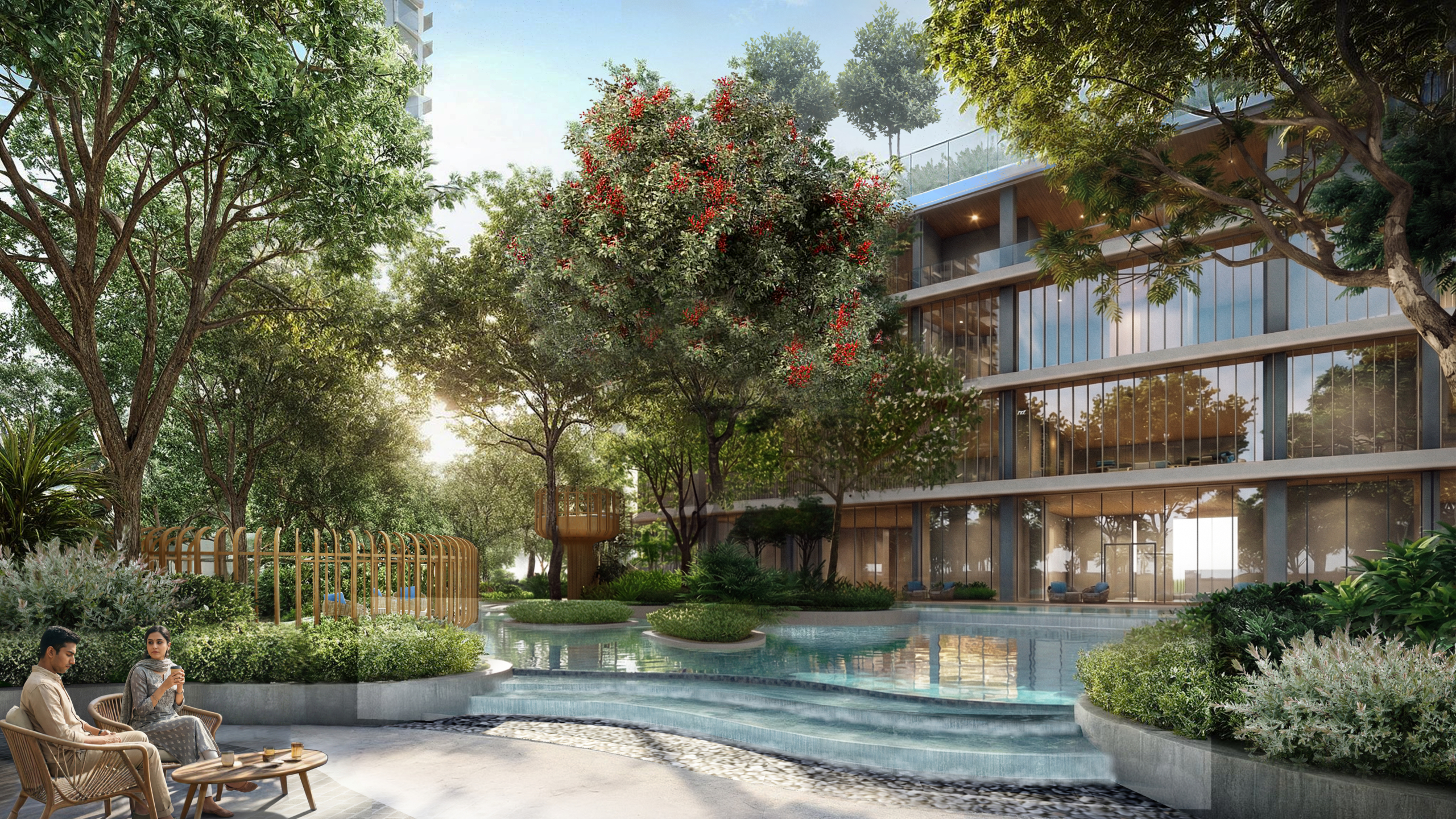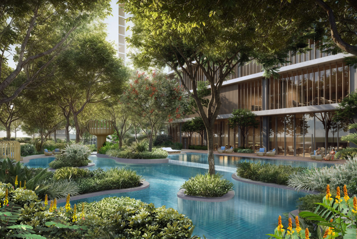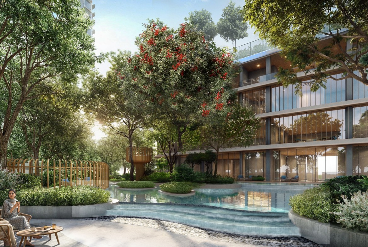 The 100,000 sqft clubhouse is among the largest, with grand lobby, lap/tropical/leisure/heated pools (kids’ sand beach pool), spa, gym, aerobics, 2 badminton/2 pickleball/multipurpose courts, mini theatre, music/dance rooms, library, banquet, creche, business lounge, restaurant. Outdoor: Jogging/cycling tracks, skating, outdoor gym, reflexology path, rain/orchard gardens, yoga zone, bonfire, pavilion lawn, senior garden, kids’ areas. Site perks include naturally lit basements, golf cart parking, curated retail, minimal traffic, and CCTV. These create a self-contained lifestyle hub, promoting wellness amid nature.